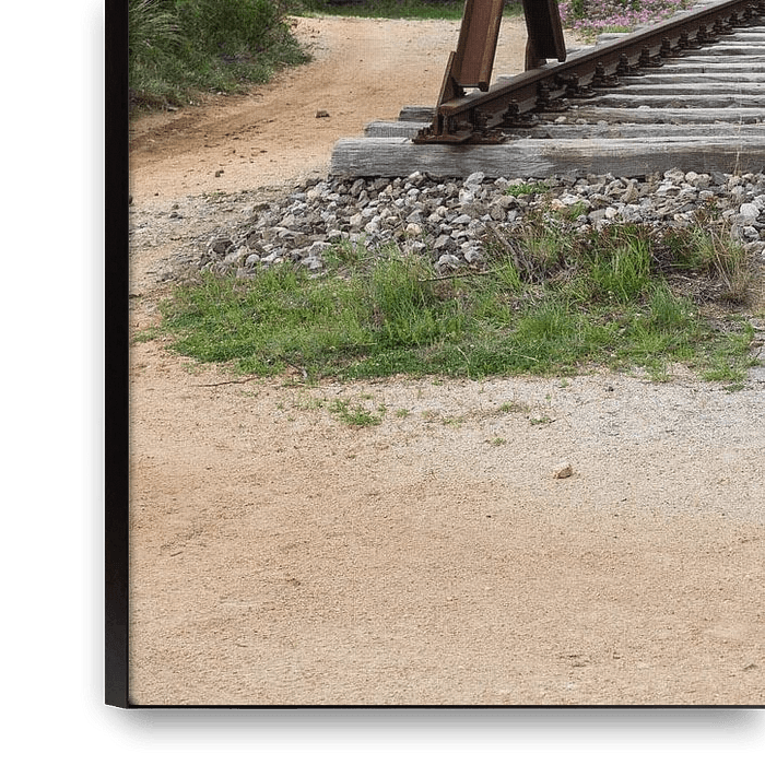 Buy this landscape artwork buffer at the end of railraod track in sardinia near golfo aranchi in italy by ChrisWillemsen on canvas, ArtFrame, poster and wallpaper, printed on demand in high quality.