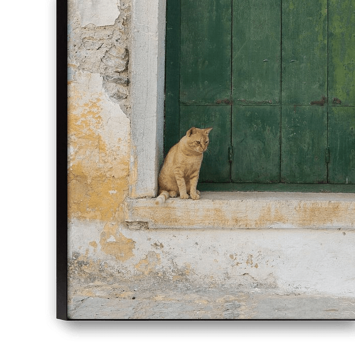 Buy the photo cat for old door by gj heinhuis on canvas, ArtFrame, poster and wallpaper, printed on demand in high quality.