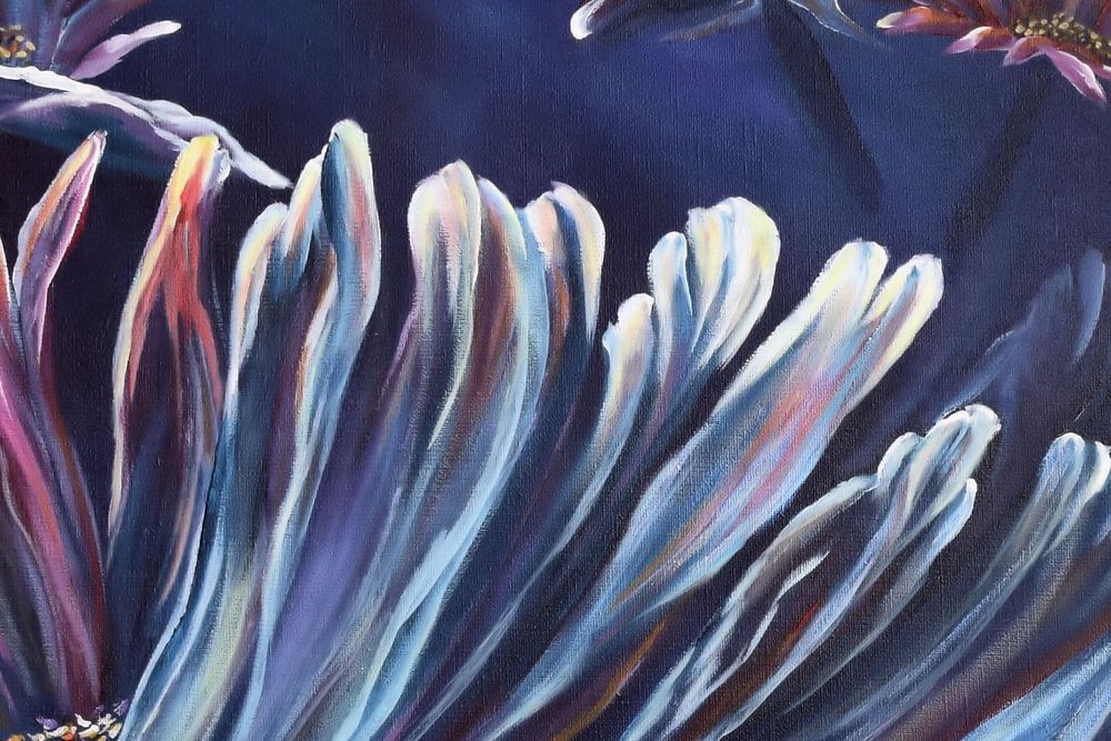 My neighbour had passed away, and that really moved me. I went home and started painting without thinking. I’ve never painted a picture so quickly. It just happened automatically.