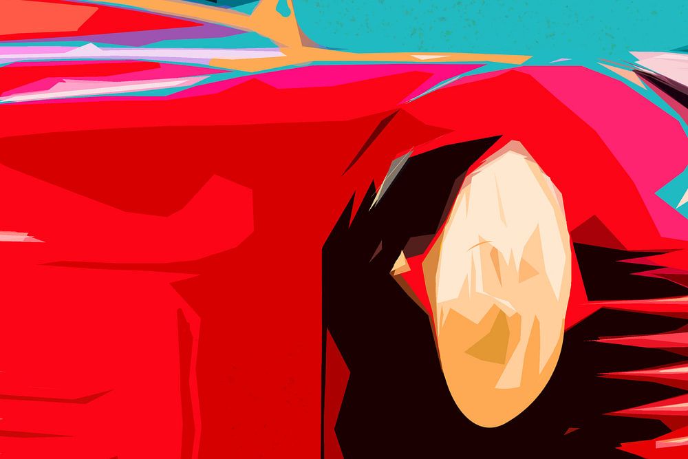 The bright red of the fire truck contrasts sharply with the cyan blue of the background. Few details, almost abstract, this digital painting is an eye catcher because of the nice color scheme and the secretly quite refined composition.