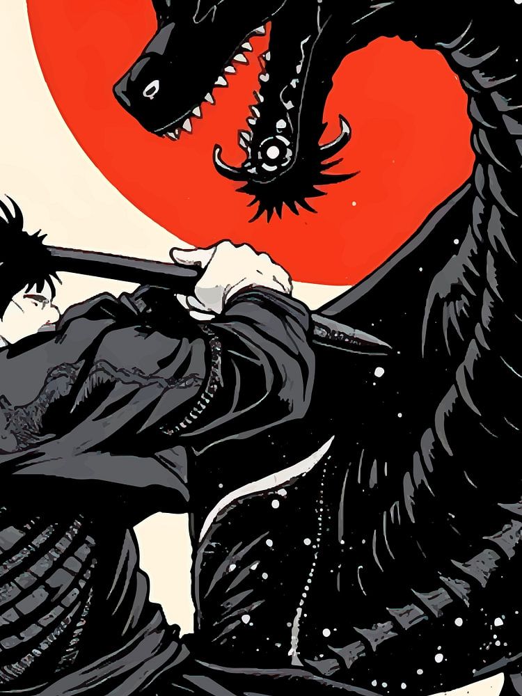 Buy this japanese art drafin vs samurai by Bovi Okta on canvas, ArtFrame, poster and wallpaper, printed on demand in high quality.