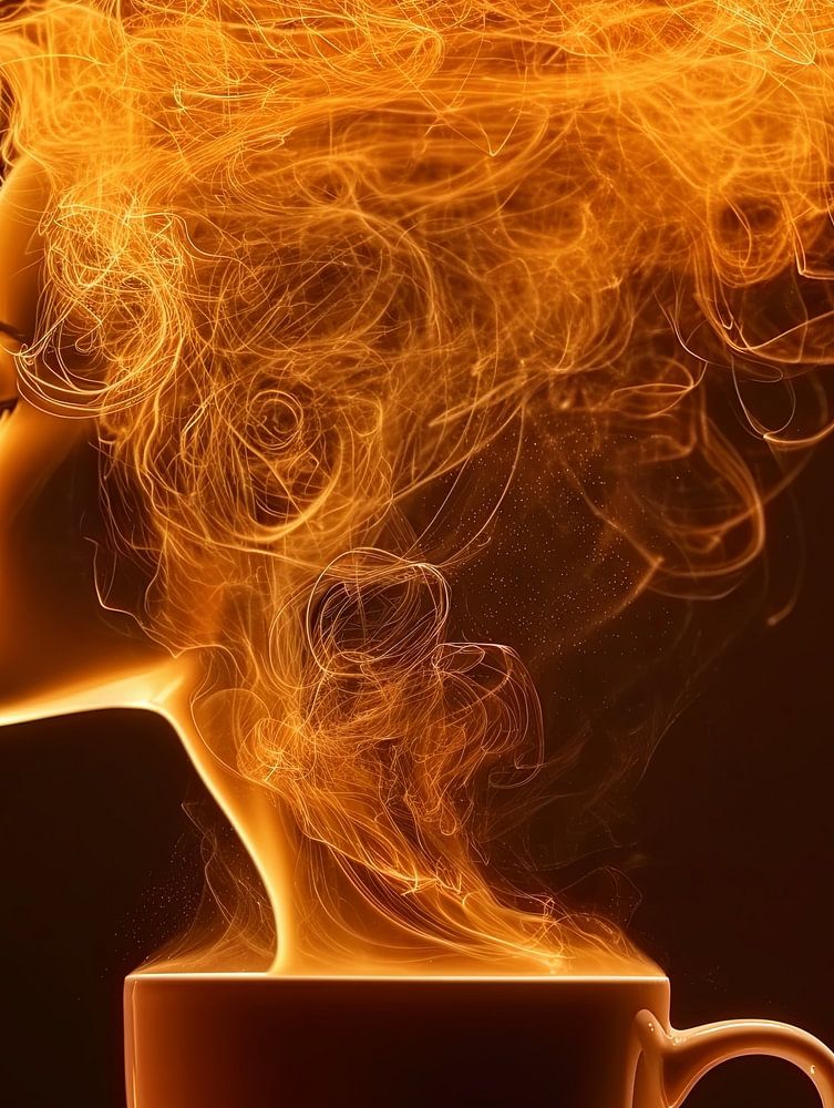 drinking cup of coffee or cappuccino with woman figure in the smoke above or on the cup