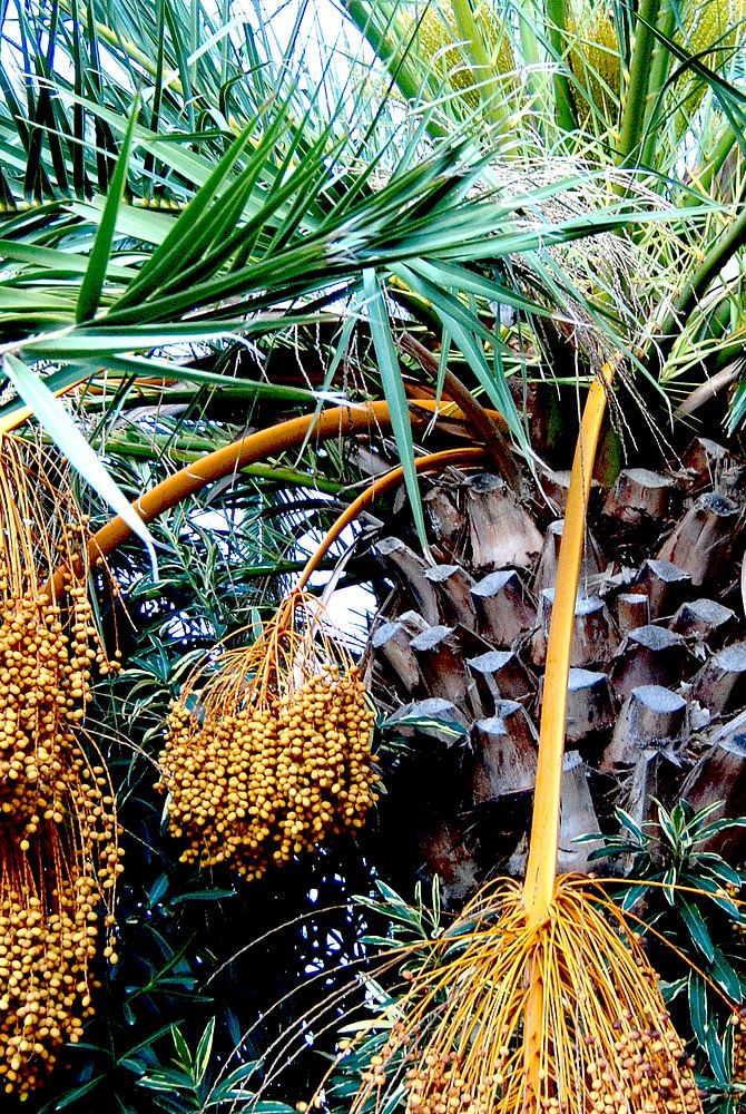 een palm vol met vruchten die zwaar zijn om te dragen, doet mij denken aan een zwangere vrouw.