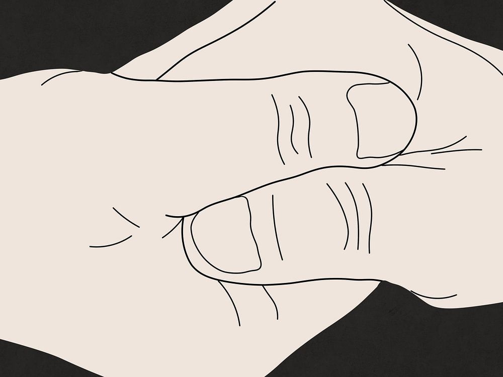 Minimalist line drawing of 2 intertwined hands, symbolic of love and friendship.