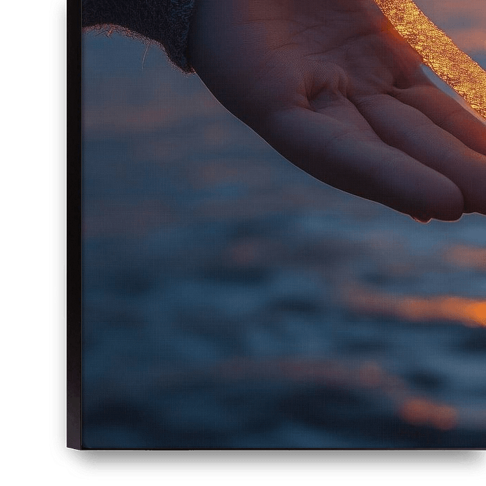 About ‘hands shaping a heart around a soft, warm sunset on the horizon’ by de-nue-pic