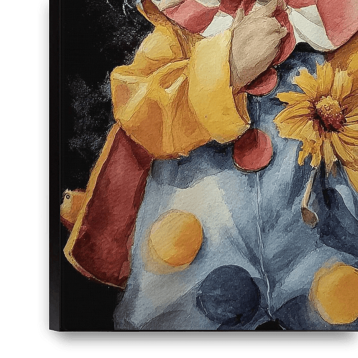 Buy this digital art artwork happy clown in watercolour by Gelissen Artworks as a reproduction on canvas, ArtFrame, poster and wallpaper, printed on demand in high quality.