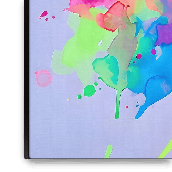 Like paint dancing on the canvas: fresh colours, playful splashes and a flower shape that radiates freedom. This work brings lightness, optimism and a sense of endless summer to the wall.