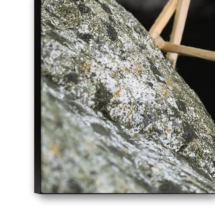 Buy the photo leonardo da vinci's self supporting bridge built from matches between big rocks, selected focus, nar by Maren Winter on canvas, ArtFrame, poster and wallpaper, printed on demand in high quality.