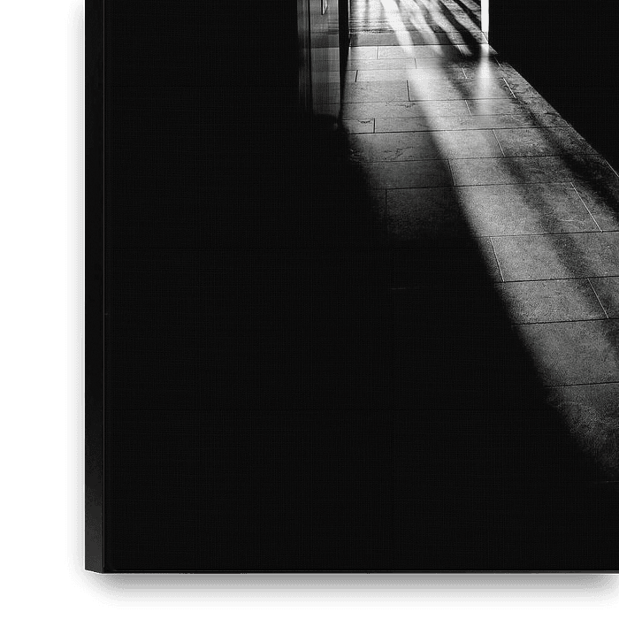 The black-and-white image captures a moment of quiet breathing. Light breaks in through the antique window, filtered through old glass that bears traces of time and history. Long sunbeams cut through the shadows and draw light lanes across the floor, like tangible reminders of a bygone hour. The contrast between light and dark…