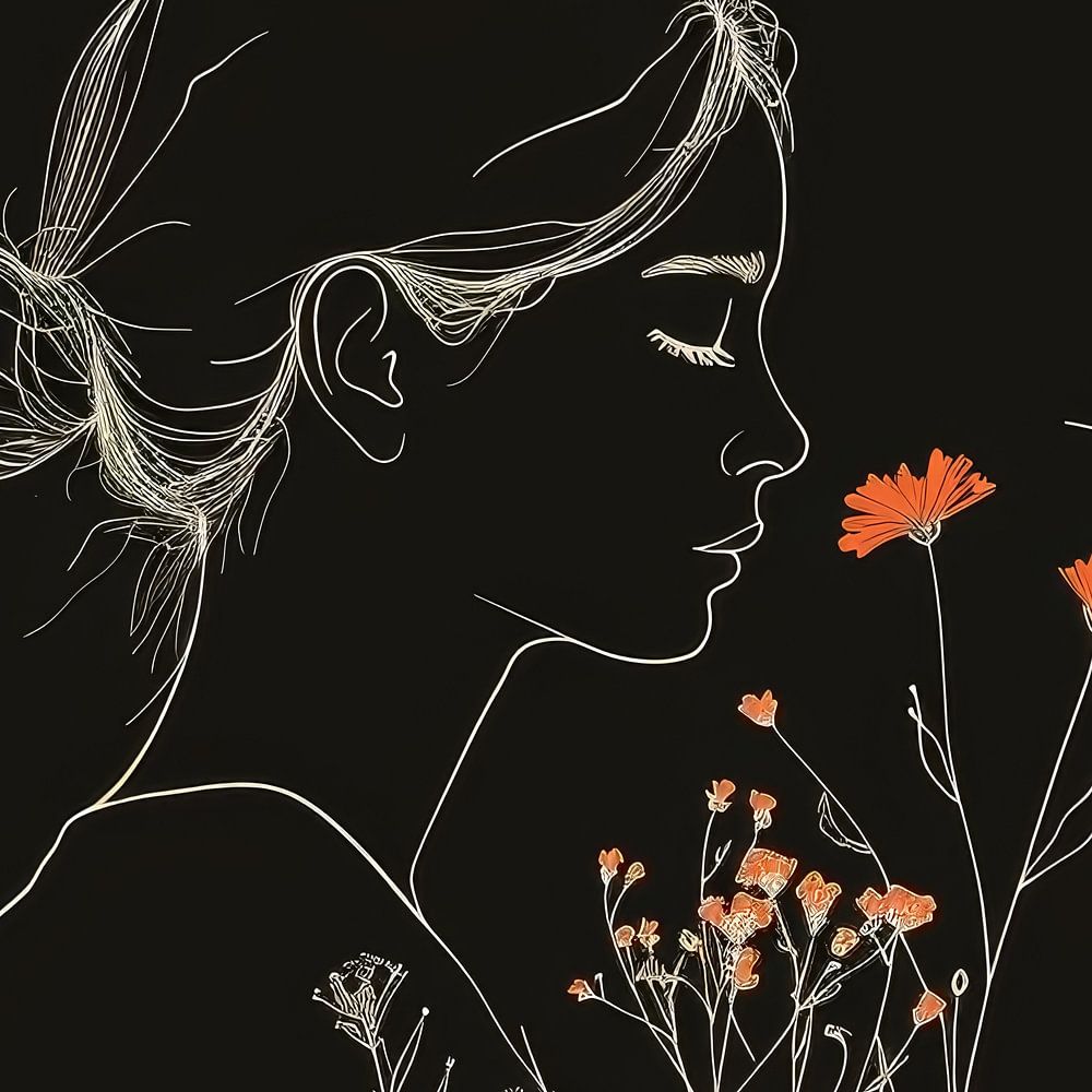 And so she stood there, the woman of lines and emptiness, with her hand holding the flower, as a reminder of the fragility of time and the eternal elegance of art.