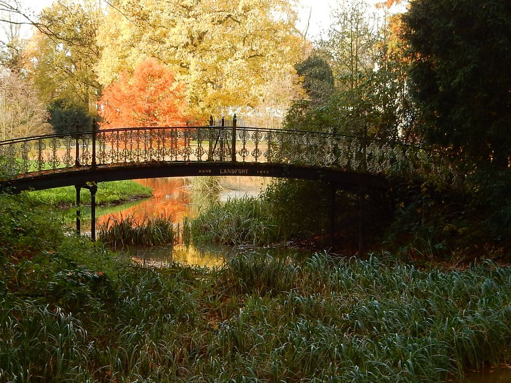Mirroring in the water with autumn colours with a bridge in Megchelen