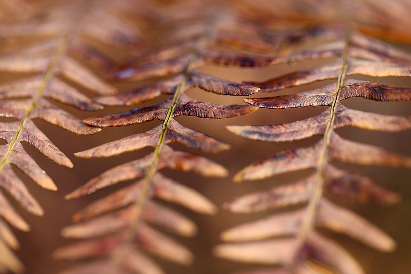 close up of fern leaves in autumn with morning dew in the forest during a walk near Nijmegen