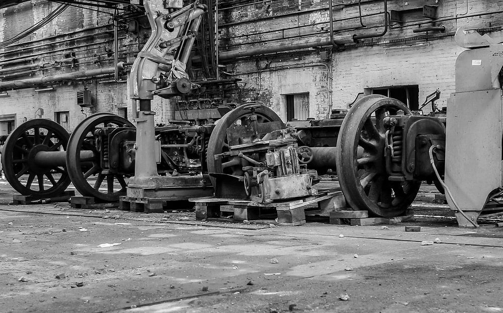 About "old steam locomotive factory building from the former GDR East Germany Eastern Bloc nostalgia"