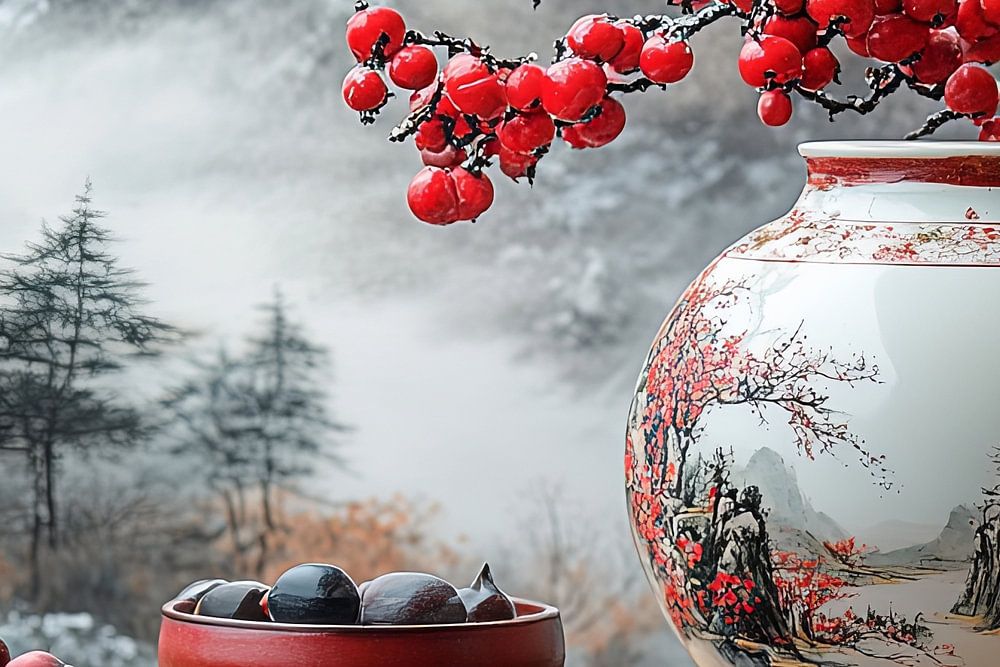 Buy this japanese art picturesque japanese art vase landscape with mountains by Egon Zitter on canvas, ArtFrame, poster and wallpaper, printed on demand in high quality.