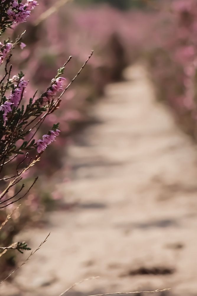 Buy this flower art purple heather with a path by Alleydam on canvas, ArtFrame, poster and wallpaper, printed on demand in high quality.