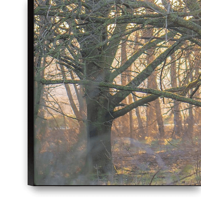 picture of a bare tree, where the rising sun shines through the branches, creating beautiful shadow lines