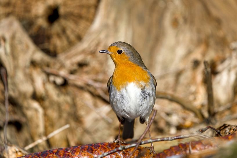 Amidst many shades of brown, the robin stands out and away. Sovereign.