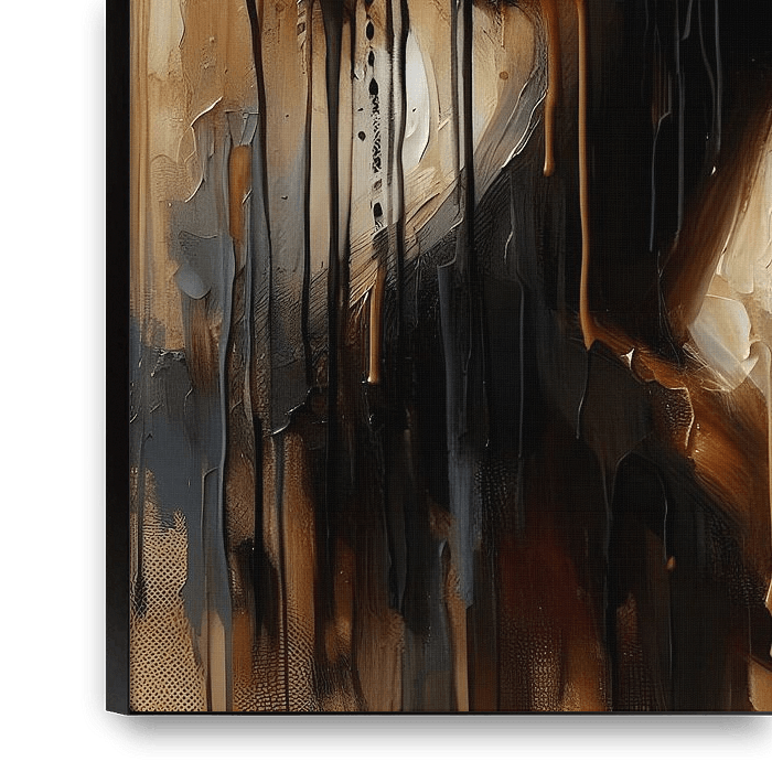 Enter the world of this modern work where a shadow of a woman shimmers in shades of brown and gold. It is like a mysterious play of light and dark on the canvas. Let your imagination run wild as you explore this work and discover the hidden beauty of the female form.