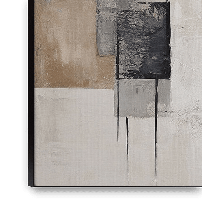 subtle contrasts - This painting features an abstract composition, soft beige and cream colours, enlivened with contrasting black details. The horizontal and vertical lines create a subtle tension, while texture layers add depth and interest.