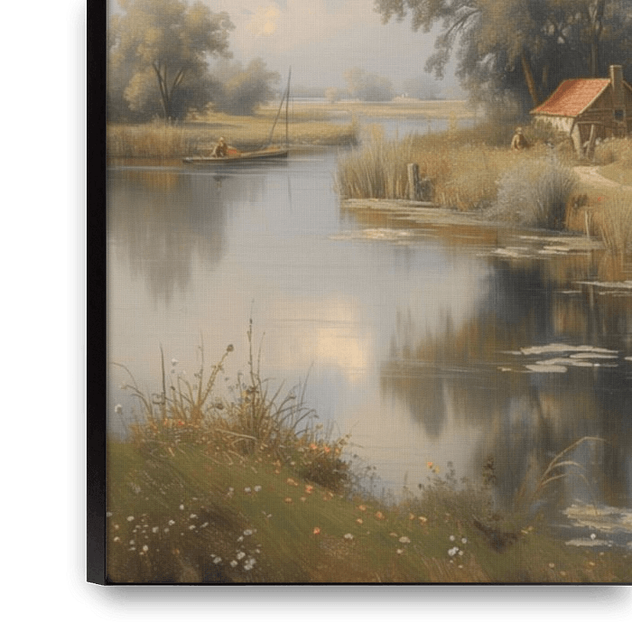 The work captures the heart of the Dutch summer landscape, in which a vivid combination of elements merges into an idyllic scene. At the centre of the composition is a typical Dutch windmill, its sails slowly turning in the summer breeze. The mill stands along the bank of a quiet ditch, whose surface acts as…