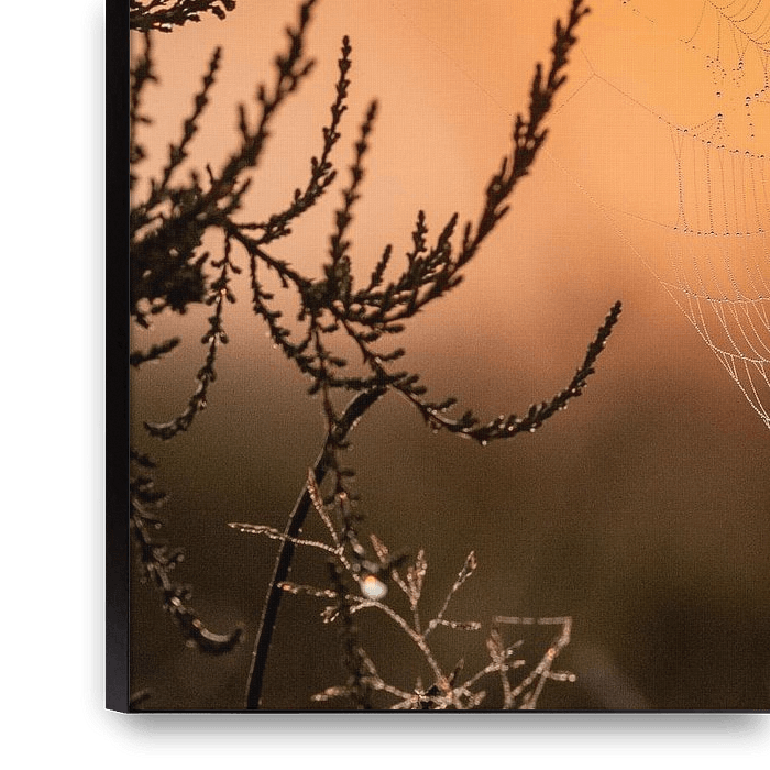 Buy the photo sunrise through the spider's web by Lydia Van de Kuilen on canvas, ArtFrame, poster and wallpaper, printed on demand in high quality.