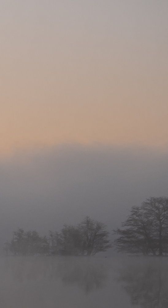 a beautiful sunrise, a calm image. the fog in the photo creates a more exciting in look.