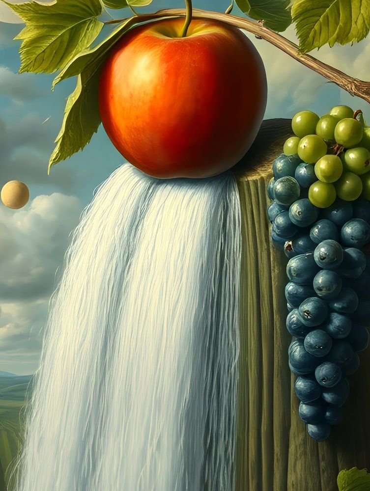Buy this digital art artwork surrealism with fruit in the landscape by Egon Zitter as a reproduction on canvas, ArtFrame, poster and wallpaper, printed on demand in high quality.