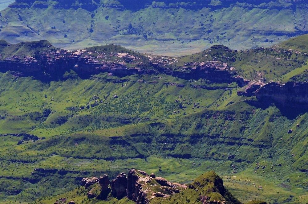 About "the green Drakensberg Mountains in Kwazulu Natal in South Africa"