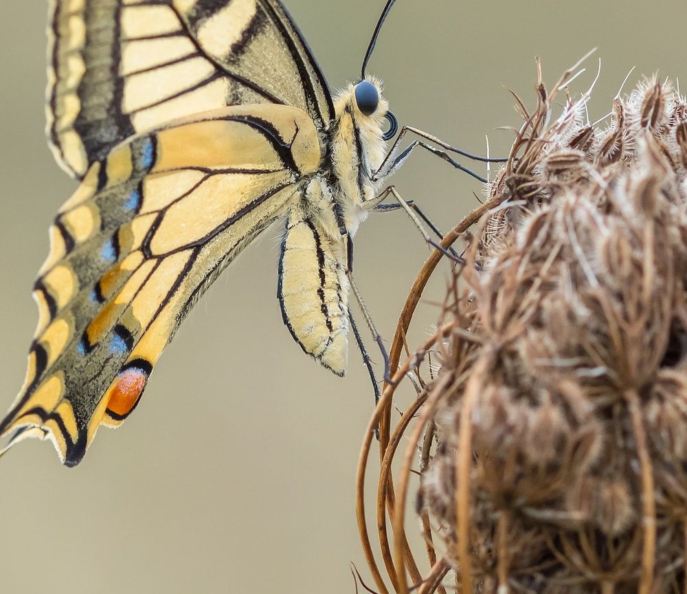 A swallowtail, flapping its wings, ready to fly away after being warmed by the sun...