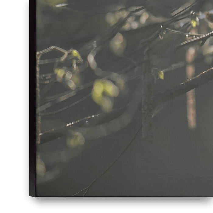 close up of a branch of a tree, full of new life, and on which the light of the golden hour shines beautifully