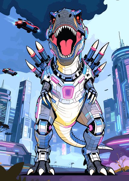 Buy this digital art artwork tirexs street city landscape by Rodiguez kenter as a reproduction on canvas, ArtFrame, poster and wallpaper, printed on demand in high quality.