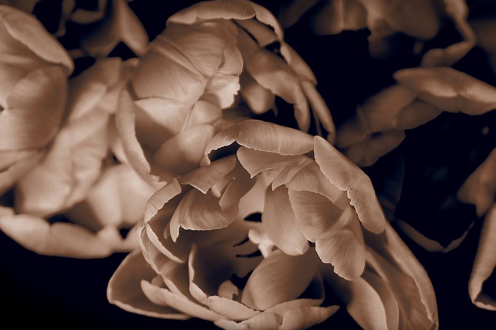 Buy the photo tulips in sepia by Pictures by Van Haestregt on canvas, ArtFrame, poster and wallpaper, printed on demand in high quality.