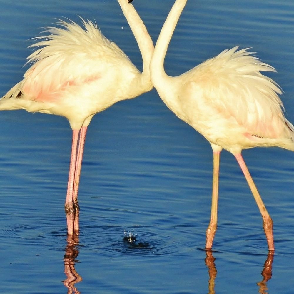 Buy this bird art two flamingos in the lagoon by Werner Lehmann on canvas, ArtFrame, poster and wallpaper, printed on demand in high quality.