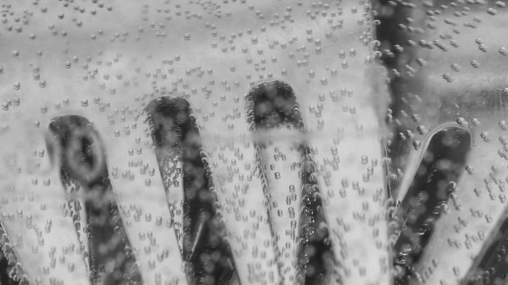 vorken in water met lucht belletjes in zwart wit uitgevoerd