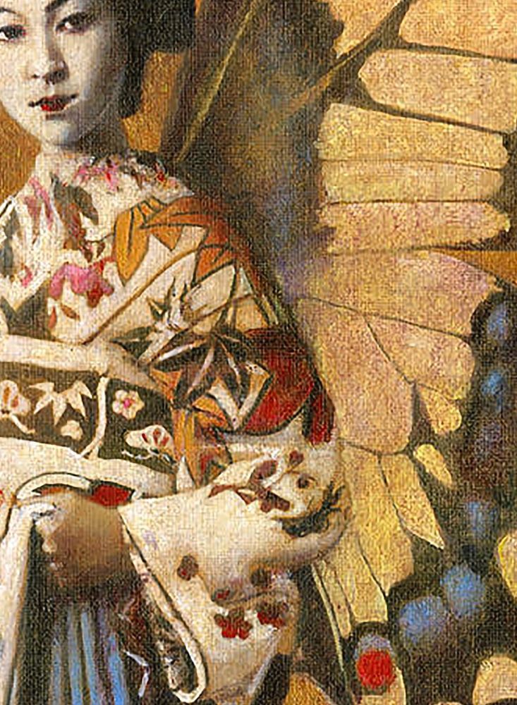 Buy this painting winged geisha by Helga Kawailani as a reproduction on canvas, ArtFrame, poster and wallpaper, printed on demand in high quality.