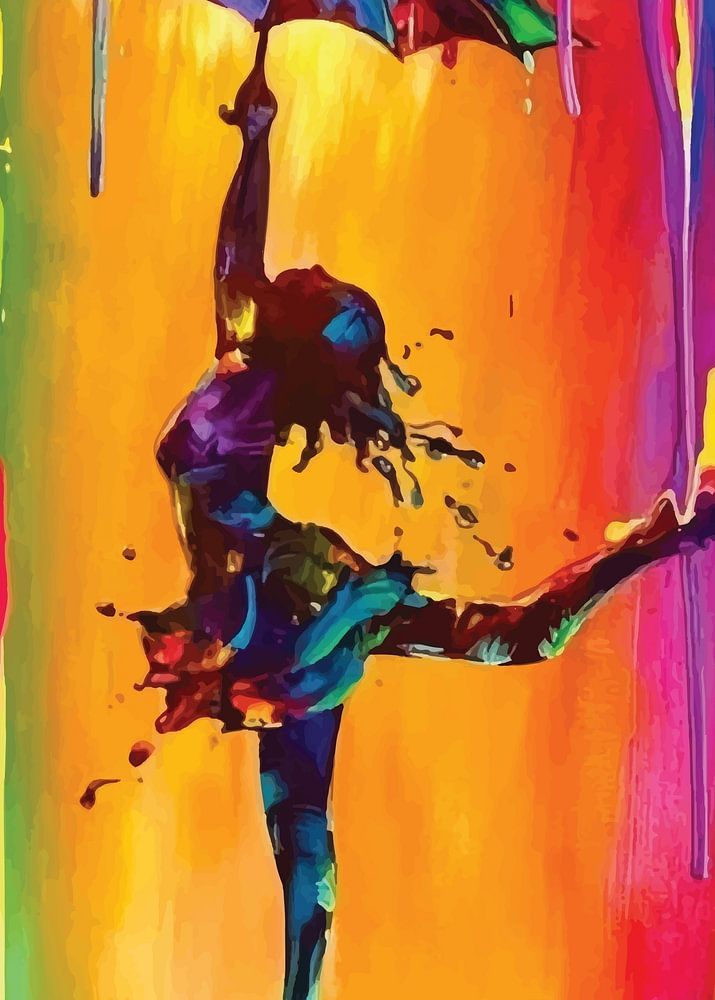Buy this abstract artwork woman dancing with an umbrella in the rain painting by Randy Barbara on canvas, ArtFrame, poster and wallpaper, printed on demand in high quality.