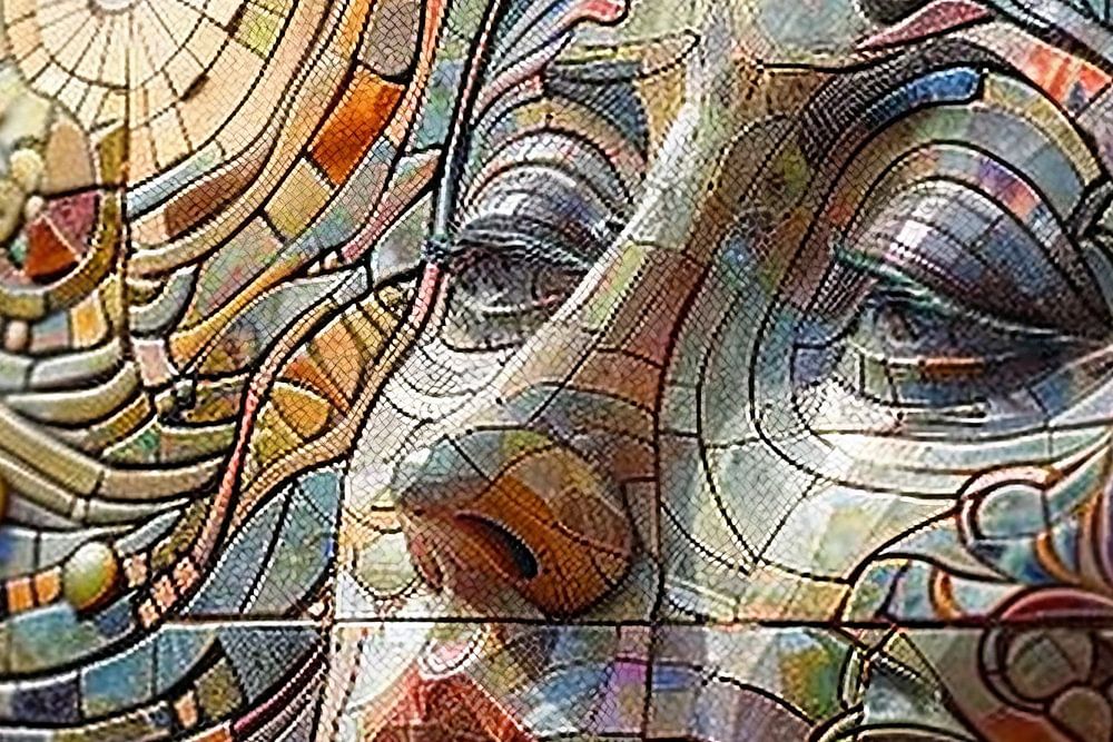 woman in mosaic painted illustration with artificial intelligence