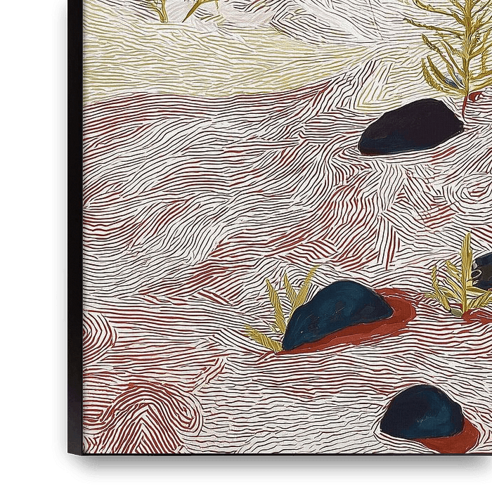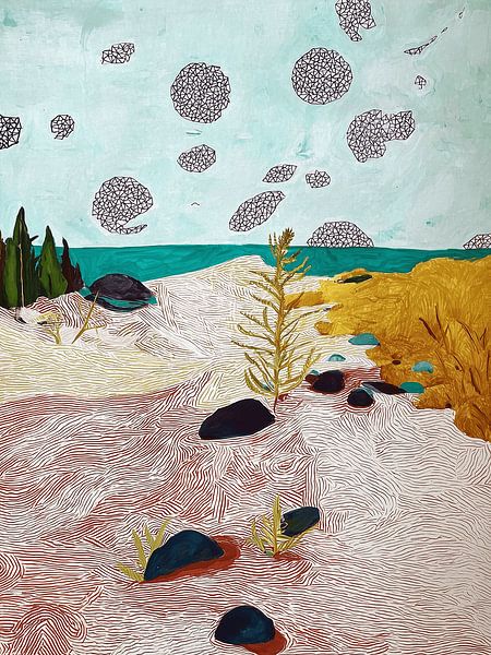 [Title] shows a hushed, abstract landscape in which space, tranquillity and imagination come together. Using simplified forms and open composition, the work balances between recognition and abstraction, without naming a specific place. The artwork is digitally constructed and inspired by traditional materials and graphic techniques,…
