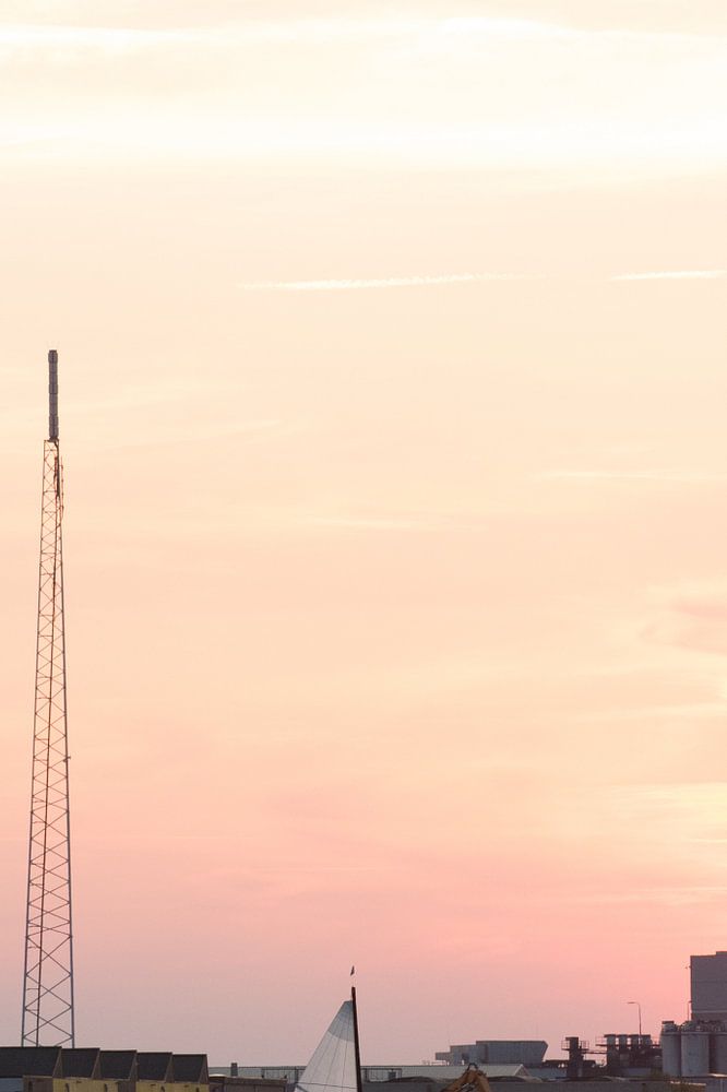 zeilboot met ondergaande zon in de haven van Enschede