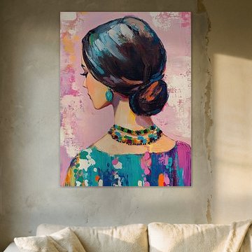 Woman with Dress | Woman in Colourful Dress by ARTEO Paintings