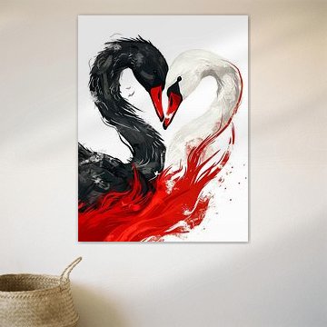 Swan love with a heart in black, white and red by Frank Daske | Foto & Design