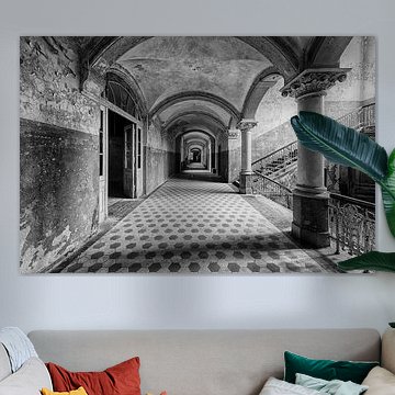 In our abandoned places art print collection you can buy photography of several lost urban places, hotels, industrial buildings or ghost towns. Abandoned places have their own charm and mystery. They take us on a journey back in time and show us decayed beauty. Buy a unique glass painting of an abandoned church, or choose mysterious street photography on aluminium of famous ghost towns.