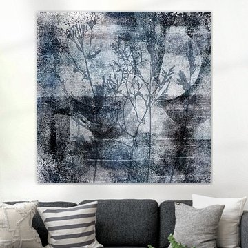 Flowers and grasses abstract botanical painting in grey, black, white by Dina Dankers