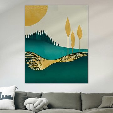 Three golden trees abstract landscape by Tanja Udelhofen
