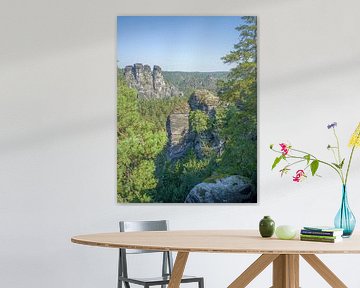 View from the Bastei bridge to the Gansfelsen in Saxon Switzerland by t.ART
