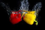 Splashing peppers! by Truus Nijland on aluminium dibond
