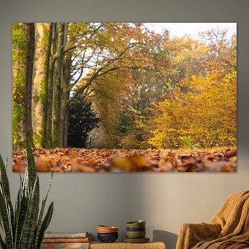 The warm colours, the changing nature and the cosy evenings. Buy an autumn landscape painting to always be reminded of those beautiful months. Go for an abstract autumn art print or, on the contrary, go for a colourful photo wallpaper of an autumn forest. The autumn artworks can also be printed on acrylic glass, canvas and more. Enjoy the earthy colours, the orange, purple and red leaves. You'll see it all in our autumn wall art collection.
