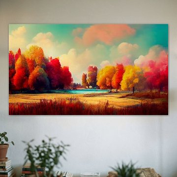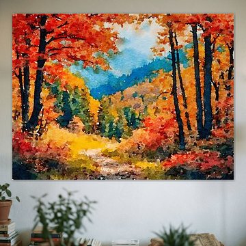 The warm colours, the changing nature and the cosy evenings. Buy an autumn landscape painting to always be reminded of those beautiful months. Go for an abstract autumn art print or, on the contrary, go for a colourful photo wallpaper of an autumn forest. The autumn artworks can also be printed on acrylic glass, canvas and more. Enjoy the earthy colours, the orange, purple and red leaves. You'll see it all in our autumn wall art collection.