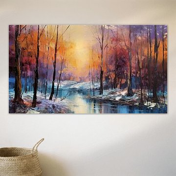 The warm colours, the changing nature and the cosy evenings. Buy an autumn landscape painting to always be reminded of those beautiful months. Go for an abstract autumn art print or, on the contrary, go for a colourful photo wallpaper of an autumn forest. The autumn artworks can also be printed on acrylic glass, canvas and more. Enjoy the earthy colours, the orange, purple and red leaves. You'll see it all in our autumn wall art collection.