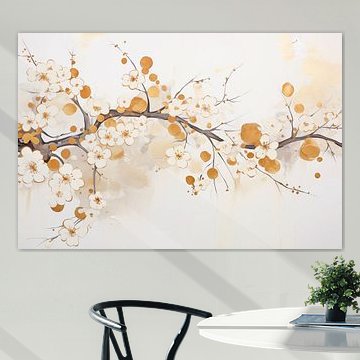 Modern abstract, Almond Blossom with gold leaf by Caroline Guerain